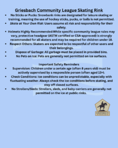 • No Sticks or Pucks: Snowbank rinks are designated for leisure skating or training only. It is not permitted to use hockey sticks, pucks, or balls on the ice surface at ALL times.